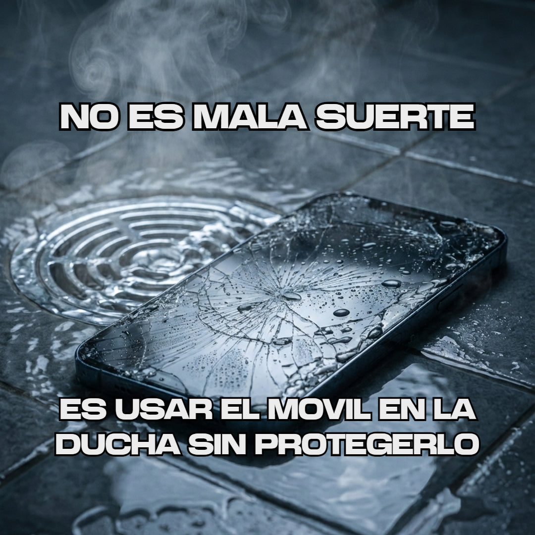 Usar el móvil mientras te duchas parece inofensivo... hasta que el vapor, el agua o una caída lo arruinan, No arriesgues tu móvil por un momento de comodidad.